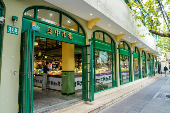 乌中市集坐落在衡复历史文化风貌区最浓密的梧桐树荫下,墨绿色的外墙、复古的马赛克瓷砖、精致的拱形门廊、圆润的弧形窗户,一踏入这里,仿佛瞬间走进张爱玲笔下细腻雅致的小说场景。“每到周末,市集里满是打扮时髦的年轻人,他们举着手机四处拍照打卡,还有不少外国游客穿梭其中,沉浸式感受上海的市井烟火。” 乌中市集负责人刘梅介绍,PRADA、祖・玛珑、亨氏等知名品牌曾先后在这里开展快闪活动,让传统菜市场的市井文化与现代潮流文化碰撞出奇妙火花。而2019年翻新后的高颜值,正是乌中市集成为“网红菜场”的关键密码。