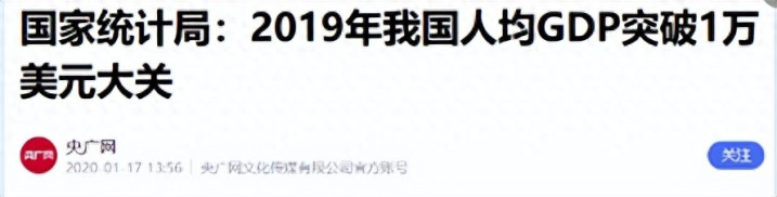 朋友们好,2019年,中国人均GDP首次迈过1万美元大关。