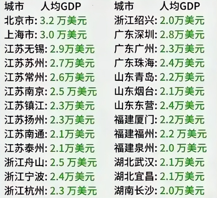 但也不是没有亮点。2024年,全国已有超30个城市人均GDP突破2万美元。
