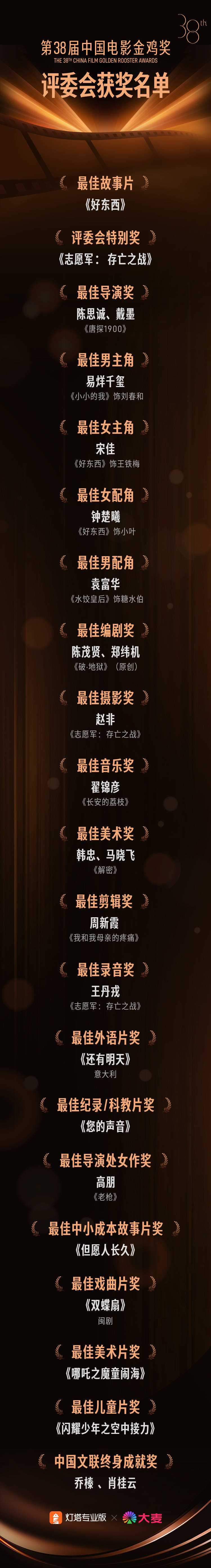 创牛配资平台 第38届中国电影金鸡奖名单出炉,《好东西》最佳影片,易烊千玺、宋佳分获最佳男女奖 最佳 来源:美原油期货配资APP下载 网站:牛米网配资 日期:2025-11-16 10:04:43 查看:144